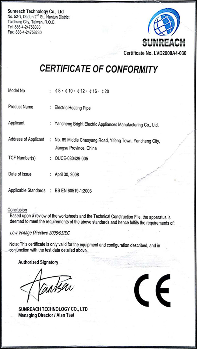 通過行業(yè)認證,為客戶提供可靠電加熱設備!